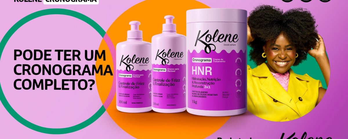 Especialista em tratamento capilar para fios com curvaturas, Kolene acredita que pode tudo quando o assunto é cabelo. Há mais de 50 anos, a marca cuida de diferentes gerações, com soluções que acompanham desde os primeiros cuidados, com a linha Baby, até a rotina de crianças, jovens e adultos. Com um portfólio completo para todas as etapas do cuidado capilar, da lavagem à finalização, atende diferentes curvaturas e necessidades. Pioneira na fabricação de cremes para pentear no Brasil, Kolene pertence à Flora, indústria nacional de cosméticos, higiene pessoal e limpeza.